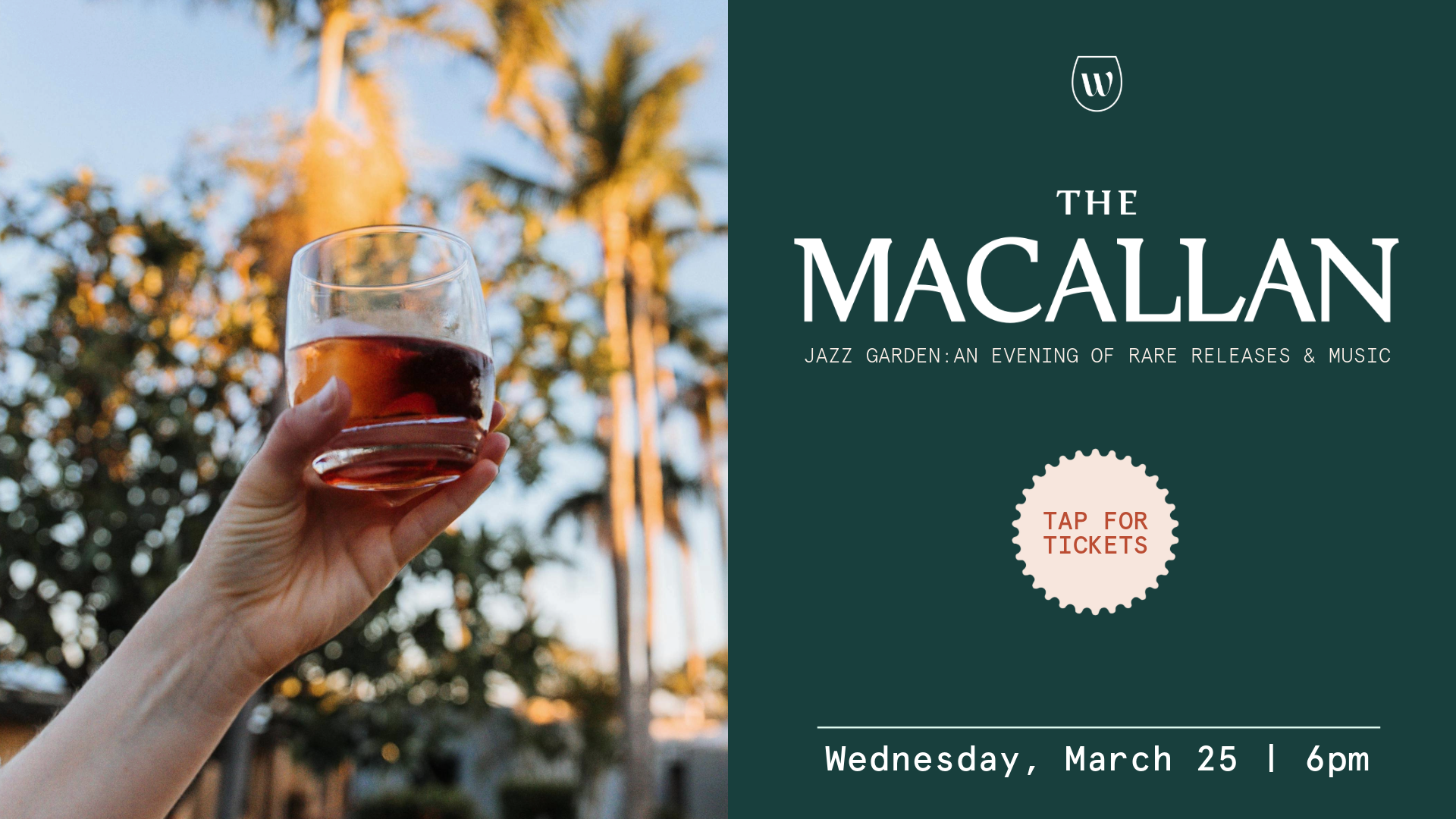 Wineaux Uncommons transforms into The Macallan Jazz Garden for an evening of exploration and celebration. Enjoy a welcome cocktail, three featured The Macallan selections, our signature Wineaux grazing table against the background of a desert sunset and live jazz.
